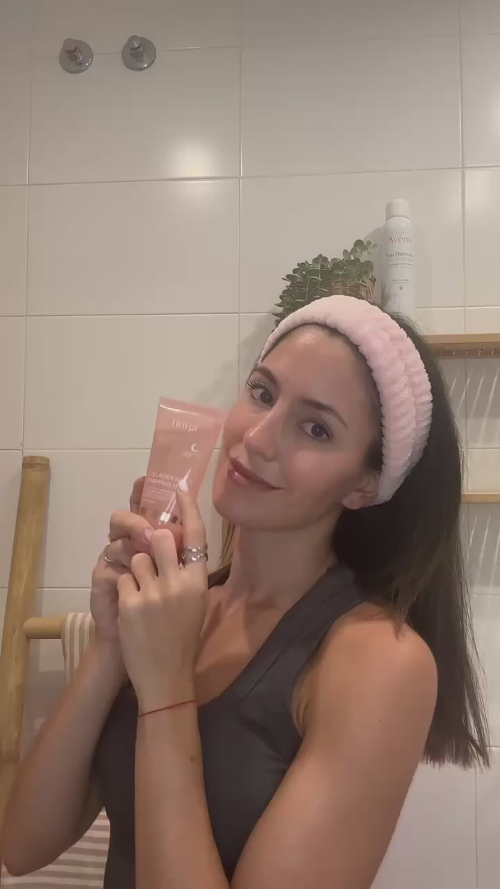 Completa tu rutina de noche de forma habitual y al final, aplica la mascarilla facial de colágeno HOYGI, como el último paso.